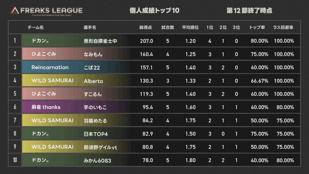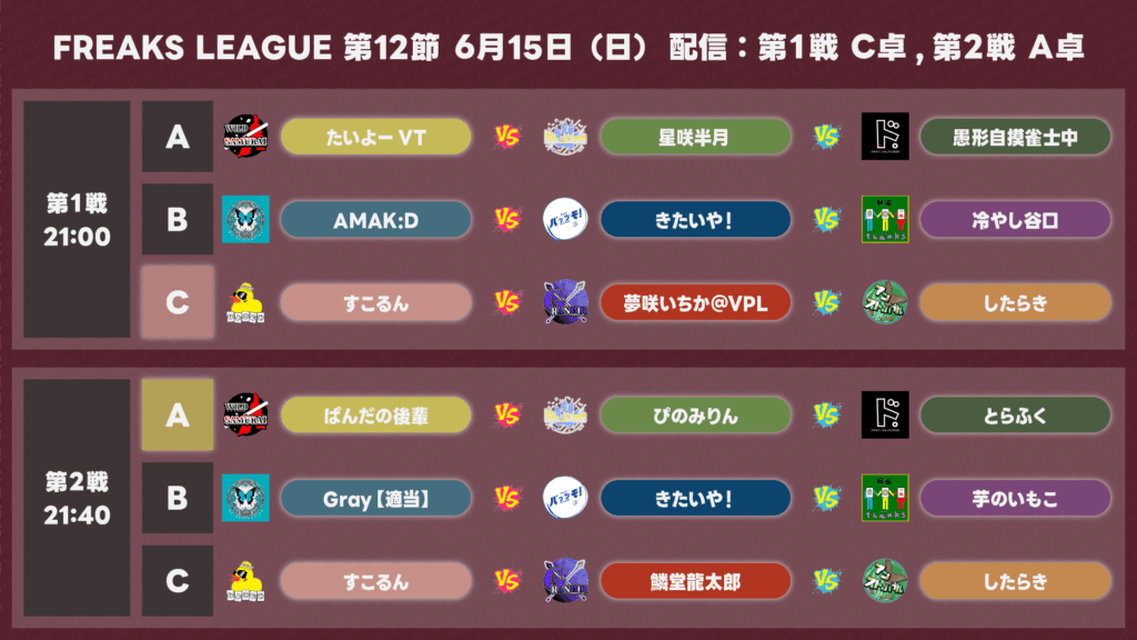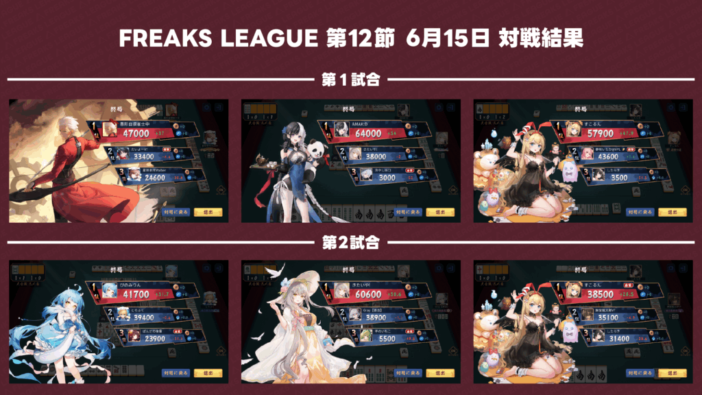 第12節 試合結果 2025.6.15 結果 X Facebook はてブ Pocket LINE コピー 2025.06.16 対戦カード 対戦結果 順位表 個人成績TOP10 公式実況解説配信 第12節ハイライト