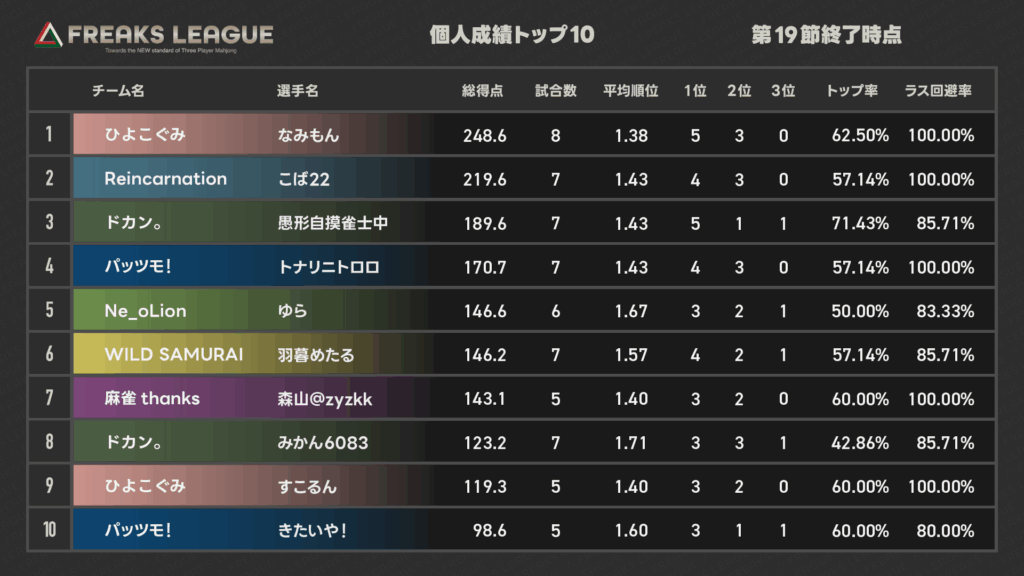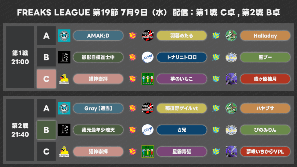 第19節 試合結果 2025.7.9 結果 X Facebook はてブ Pocket LINE コピー 2025.07.09 対戦カード 対戦結果 順位表 個人成績トップ10 公式実況解説配信 第19節ハイライト