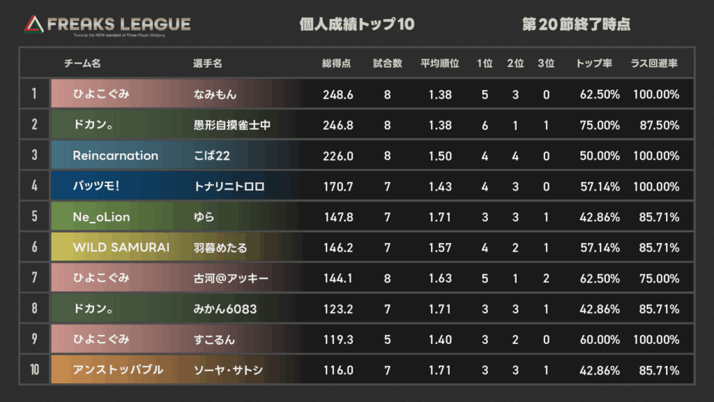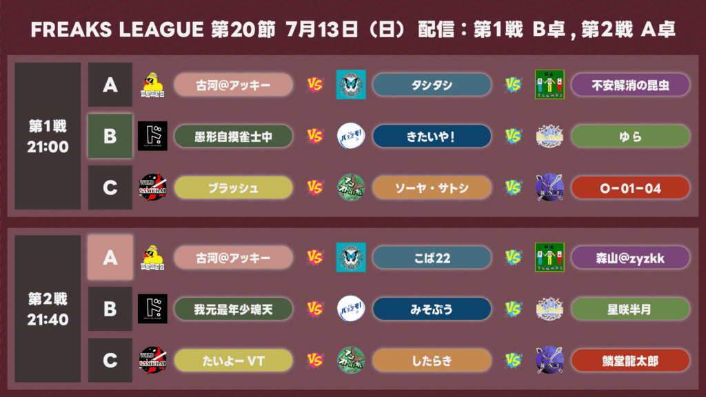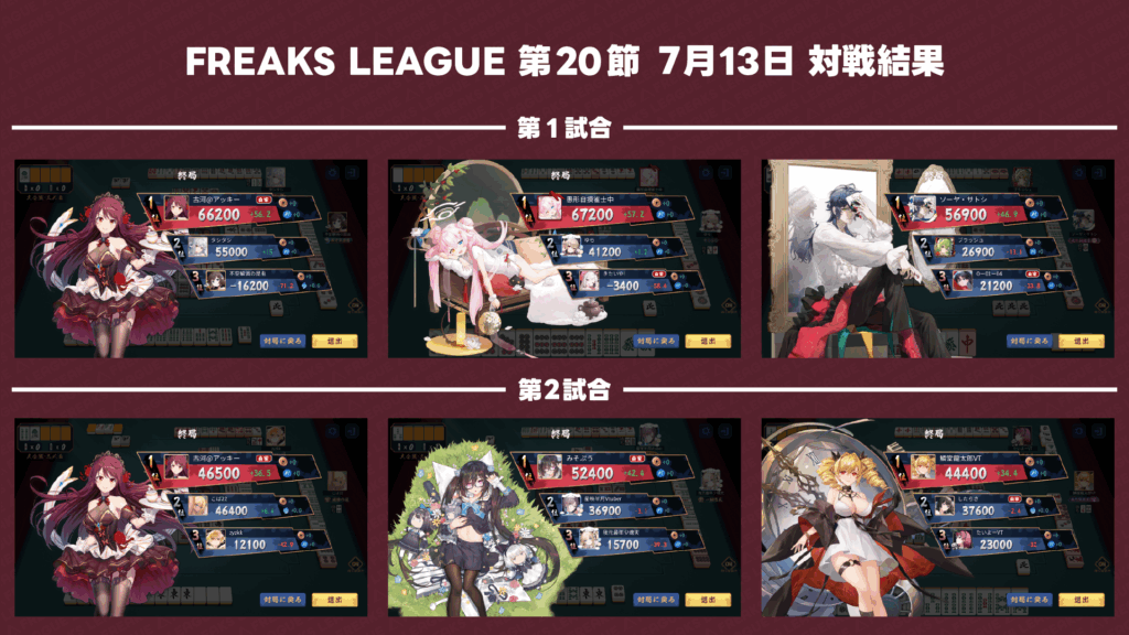 第20節 試合結果 2025.7.13 結果 X Facebook はてブ Pocket LINE コピー 2025.07.13 対戦カード 対戦結果 順位表 個人成績トップ10 公式実況解説配信 第20節ハイライト